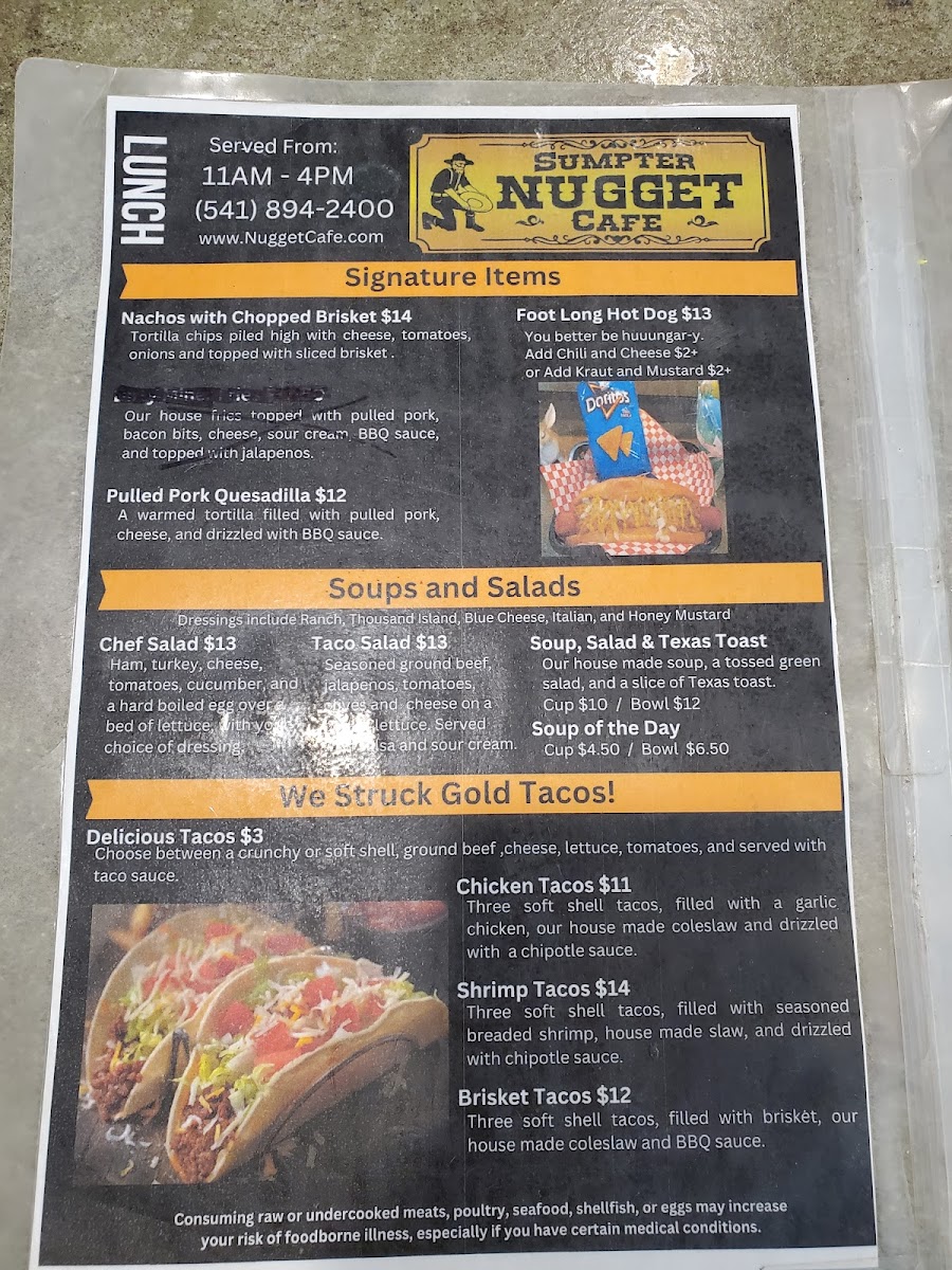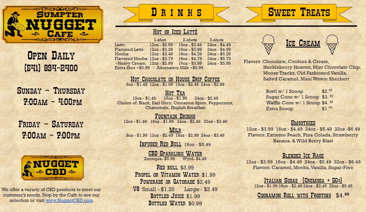 Sumpter Nugget Cafe Menu